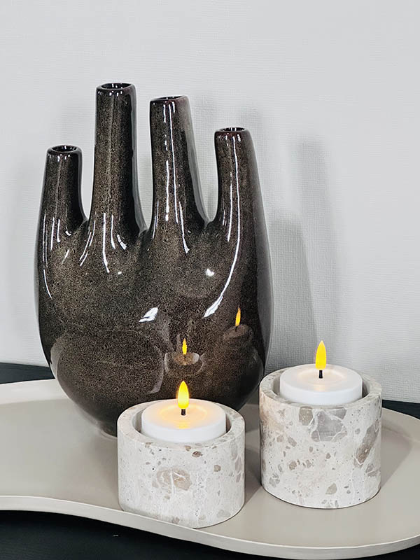 Met de verschillende openingen verdeel je bloemen of takken moeiteloos, zonder dat het druk wordt. Zo creëer je een luchtig geheel dat altijd klopt — zelfs als je er weinig in zet.