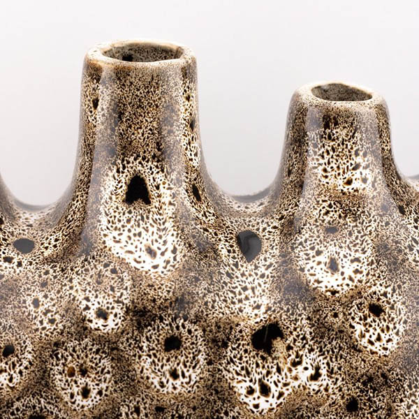 De lichte, natuurlijke tinten en subtiele structuur geven deze vaas een rustige en verfijnde uitstraling. De combinatie van zachte kleuren en het bijzondere oppervlak zorgt voor een warm en levendig geheel dat in elk interieur tot zijn recht komt.