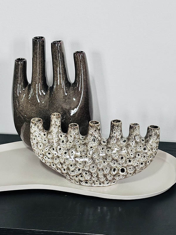 Deze tulpenvaas van Homebound by KY is een uniek designobject dat kunst en interieur moeiteloos samenbrengt. De organische vorm met meerdere openingen zorgt voor een speels en stijlvol effect dat direct de aandacht trekt.