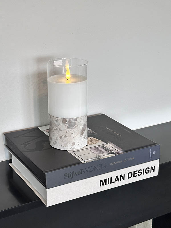 De compacte afmeting maakt deze kaarsenhouder perfect voor een dressoir, salontafel of sidetable. Combineer hem met andere materialen zoals hout, staal of glas voor een mooi contrast. Een stijlvolle blikvanger die direct sfeer toevoegt.