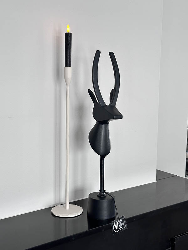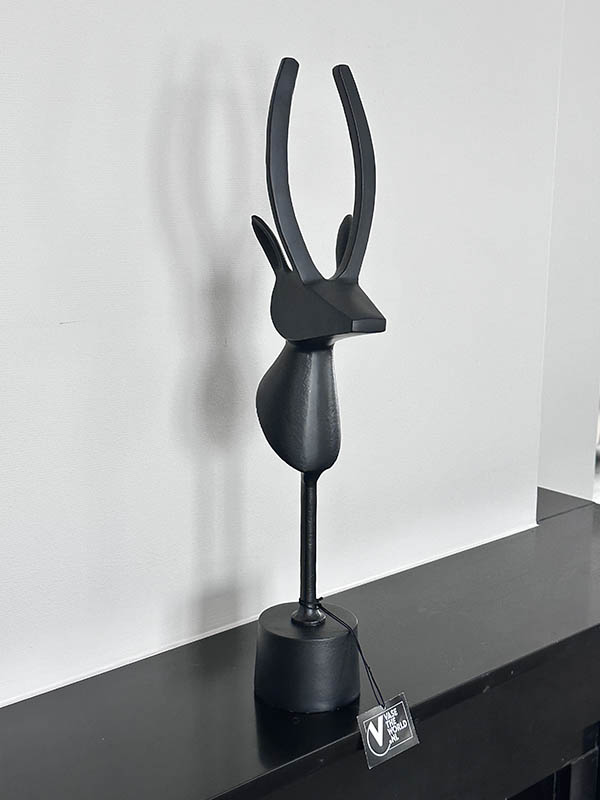 Het strakke silhouet en de zwarte afwerking maken dit hert veelzijdig: perfect als statement piece op een dressoir, in de vensterbank of in een open kast. Combineer met de kleinere variant voor een harmonieus geheel.