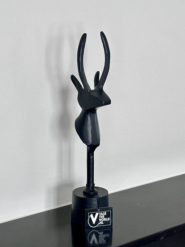 Het Hert Palpa van Vase The World in zwart metaal is een subtiel maar stijlvol decoratiestuk. Met zijn slanke design en matte zwarte afwerking straalt dit ornament moderne luxe uit. De middelgrote hoogte van 41 cm maakt dit hert perfect voor de vensterbank, het dressoir of een bijzettafel.