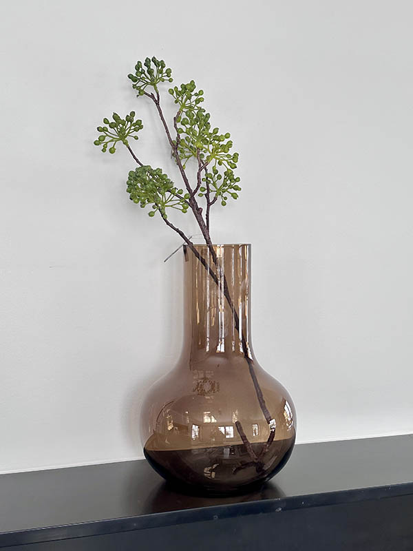 Met zijn formaat van Ø25,5 x H37 cm is deze vaas ideaal voor een los boeket, een paar lange takken of een minimalistische styling. Door zijn rustige uitstraling laat hij bloemen spreken, zonder zelf te overheersen.